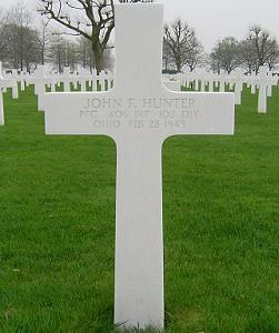 Pfc John F. Hunter attended Fairview High School for one year and was employed by the Frigiaire Division on General Motors Corporation.He enlisted at Fort Thomas, Newport, Kentucky on 2 May 1944.