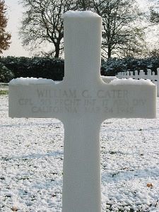 Cpl William G. Cater enlisted at Fort McDowell, California, on 27 September 1940.Cpl William G. Cater was aboard a C-46 aircraft in Serial A-5, 313th TCG, 9th TCC scheduled to drop by parachute onto Drop Zone W. Due to a smokescreen and disorientation of the aircraft, his unit was dropped 2.5 miles northeast of the drop zone, east of a railway line and 1.5 miles southwest of Hamminkeln, Germany, where he was killed.