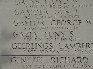 Pfc Tony S. Garzia enlisted on 20 November 1942 at Camp Toccoa, Georgia. He trained at Camp Mackall, North Carolina.Tony S. Garzia was officially declared dead one day and one year after he was reported missing in action.
