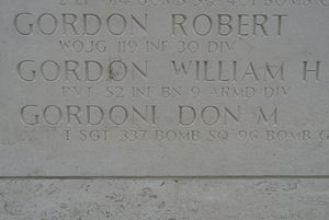 T/Sgt Don Gordoni enlisted in Wilmington, Delaware on 14 November 1941, together with his brother Charles under the name of their mother, Lillian Gordoni. He began working for the radio in Chicago as an announcer when he was 14 years old.The plane was last seen over the North Sea. They had suffered continuous fighter attacks which set the plane on fire. Six crew members bailed out at about 5000 feet over the North Sea as six parachutes were seen in the air. Only the bombardier, Lawrence Robert Wolford survived. In his post war statements, together with apparently eye witness statements from other planes in the formation, it is believed that the regular co-pilot (who was flying in the tail gunner position) was killed in the fighter attacks. Also the Radio Operator was believed to have been killed prior to the bailout. There is no mention or speculation in the MACR of exactly what might have happened to Postlewait.