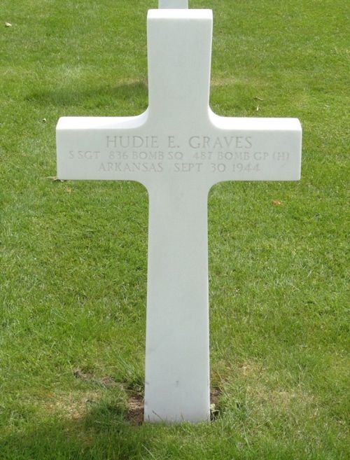 S/Sgt Hudie E. Graves' birthname was Hugh E. GravesIt is believed that heavy contrails and prop wash was the cause of aircraft 43-38037 going over on its back while in a sharp right turn and colliding with aircraft # 43-38154. Aircraft # 43-38037 lost the right wing and aircraft # 43-38154 lost the left wing. Both aircraft went into a spin and parts were observed flying off.