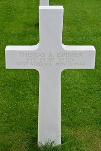 Pvt Thomas Gribben enlisted on 31 March 1944 at Fort Thomas, Newport, Kentucky.He joined his unit from a replacement depot on 12 October 1944.