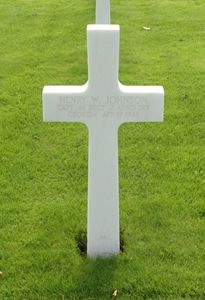 The chaplain of Capt Johnson's unit, Capt Luke Bolin, wrote the following to his parent: "On March 28, this Division crossed the Rhine river and began a rapid push which sealed this Ruhr pocket and took us within sixty-miles of Berlin", the chaplain's letter revealed. "On April 17, combat command 'A' in conjunction with the 30th Infantry Division, began an attack on the city of Magdeburg, Germany. From a hill outside the city I watched the attack begin and then went back to the medical company support our part of the attack. Before very long some slightly wounded men from 'F' Company came in for treatment and they informed me that Captain Johnson had been killed in action. A little later an Infantry Lieutenant whose infantrymen were working with 'F' Company, came in and told me how it happened. As they were advancing through the suburbs of the town he was wounded and Captain Johnson got out of his tank to remove him to a safe position. Then, unfortunately, a German bazooka shell, which they were using as an anti-tank weapon and artillery, hit near them and shrapnel from it killed Captain Johnson. The Infantry Lieutenant had the highest praise for Captain Johnson as an efficient Combat Officer and was very sad that he was killed. His body was evacuated in the United States Military Cemetery at Margraten near the city of Maastricht, Holland, and laid to rest after a Protestant chaplain had conducted an appropriate funeral service."