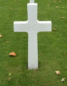 Pfc John C. Johnson was sent overseas in June 1944 and had just returned to his company after being wounded in action when he was killed.His brother, T/4 Carl E. Johnson, also served in Europe, his brother, Pfc Virgil Johnson, was stationed in the U.S. and his brother, Pfc Wm. F. Johnson, served with the U.S. Marines in the South Pacific at that time.