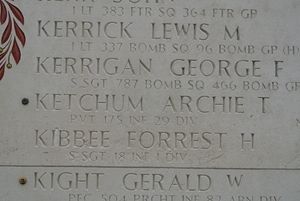 Pvt Arie Ketchum enlisted on 7 December 1943 at Fort Bragg, North Carolina. He joined his unit from a replacement depot on 20 September 1944.He is buried at Ardennes Cemetery.