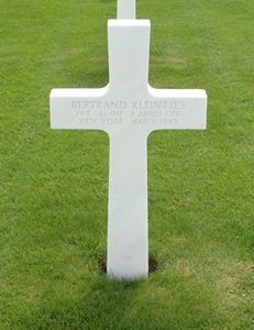 Pvt Bertrand Kleintjes entlisted on 3 April 1944 at Fort Dix, New Jersey and trained at Camp Wheeler and Fort Benning, Georgia. He was sent overseas in January 1945.Source of information: Carla Mans, www.wwiimemorial.com, www.ancestry.com 1925 Census / Family Trees, http://cgsc.contentdm.oclc.org - After Action Report CCA