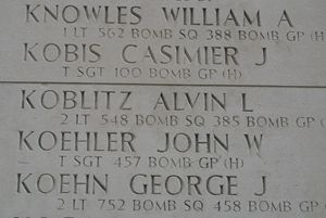 Lt. Alvin L. Koblitz graduated from Cleveland Heights High School and was employed by the Ilex Optical Co. in Rochester, New York.He joined the Air Corps of the U.S. Army Reserve in Columbus, Ohio on 19 October 1942 and was sent overseas in November 1944.