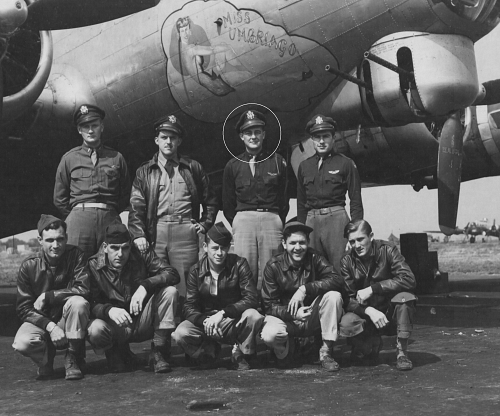 The co-pilot, 2nd Lt Lloyd E. Goff, later related that the B-17 caught fire immediately after being hit and blew up at 25,000 feet after he veered the B-17 to the right. He landed with holes in his parachute caused by ground fire at him while he was descending. He believed that 1st Lt Paul K. Bennett (Pilot), 2nd Lt Elwin A. Lane (Navigator) and S/Sgt Charles E. Jones (Ball Turret Gunner) were killed from shots from the ground while they were still descending in their parachutes.