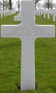 2nd Lt John L. Land graduated from Boys High School in 1937 and from the Univeristy of South Carolina in 1941. He attended Charleston Medical College for one year.He enlisted at Fort Jackson, Columbia, South Carolina on 13 July 1942 and was selected for the Officer Candidate School. He received his commission in May 1943. A short time later he was married to Miss Betty Nininger, after which he was stationed at Fort Meade, Maryland for over a year. He was sent overseas in September 1944.