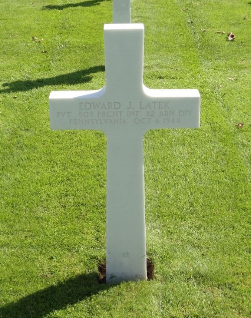 Pvt Edward J. Latek enlisted in Pittsburgh, Pennsylvania on 24 April 1942.Source of information: The Washington Observer - 3 November 1944, www.wwiimemorial.com, www.ww2-airborne.us, www.ancestry.com - Enlistment Record / 1930 Census / Veteran Compensation Application File, www.archives.gov