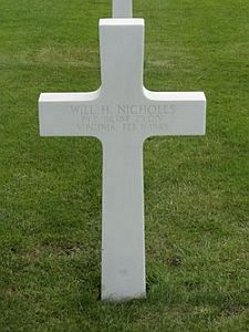 Pvt Will H. Nicholls enlisted in Richmond, Virginia on 18 October 1943. He joined his unit from a replacement depot on 5 July 1944 and was seriously wounded in action on 6 July 1944.Source of information: Raf Dyckmans, Terry Hirsch, www.wwiimemorial.com, www.archives.gov - WWII Enlistment Record, www.ancestry.com - 1930 Census, www.fold3.com - WWII Draft Card