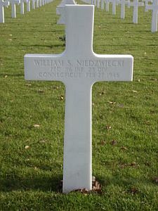 Pfc William Niedzwiecki enlisted on 20 March 1944 at Fort Devens, Massachusetts. He joined his unit from a replacement Depot on 27 October 1944.Source of information: Raf Dyckmans, Terry Hirsch, Irene Niedzwiecki Placzek, www.wwiimemorial.com, www.archives.gov - WWII Enlistment Record, www.ancestry.com - Headstone and Interment Record / Family Tree