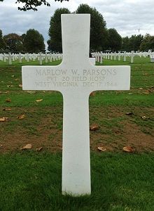 Pvt Marlow W. Parsons inducted 8 July 1942. He served with 20th Field Hospital. He died of wounds received in combat 17 December 1944.