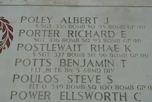 Source of information: FOHF, www.abmc.gov, www.wwiimemorial.com - National Archives, ABMC Tablets of the Missing, www.findagrave.com - CWGC/ABMC, www.ancestry.com - 1925 Kansas State Census, 1940 Census US, Holder-Dunlap-Maples-Lawrence Family Tree, www.96bg.org, http://forum.armyairforces.com, http://genealogie.startpagina.nl, www.fold3.com - MACR 140