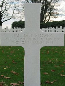 Pfc Jacob J. Flower was killed during Operation Varsity.Source of information: Tom Verheijden, Astrid van Erp, www.ancestrycom - Headstone and Interment Record / 1940 Census