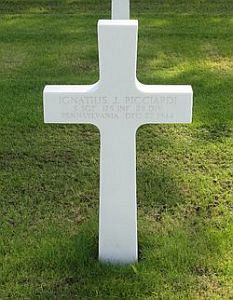 S/Sgt Ignatius J. Ricciardi enlisted in Philadelphia, Pennsylvania on 30 September 1943. He was seriously wounded in action on 17 July 1944. After recovering he returned to active duty on 29 October 1944. For this wound he was awarded the Purple Heart Medal a first time.All four sons served during the war, either in the Army or the Navy.