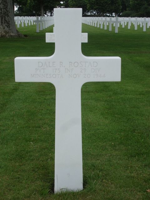 Pvt Dale R. Rostad joined his unit from Replacement Depot on 16 October 1944.The night before Dale died, he had a chance to speak with his brother Loran because Loran was an Army telephone operator. He told him about his struggle with pain related to a surgery for appendicitis when he was a boy. But he was still fighting well. A short while later Loran got the bad news of his sacrifice.