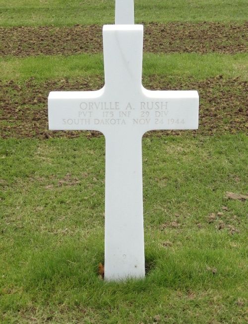 Private Orville Rush graduated from Harrisburg High School.He enlisted on 28 February 1944 at Fort Snelling, Minnesota and was sent overseas in August 1944.
