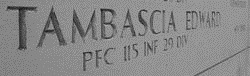 Pfc Edward Tambascia enlisted in the National Guard in Buffalo, New York on 16 September 1940. He joined his unit from Replacement Depot on 7 August 1944. He was an actor before he enlisted. He attended Kensington High School in Buffalo, New YorkSource of information: Raf Dyckmans, Terry Hirsch, www.wwiimemorial.com, www.archives.gov - WWII Enlistment Record, www.ancestry.com - New York WWII Enlistment Card / 1940 Census / New York Records of the State National Guard