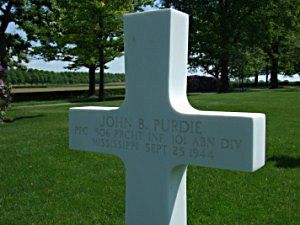 Pfc Purdie was initially buried at the Temporary American Military Cemetery of Son, The Netherlands.