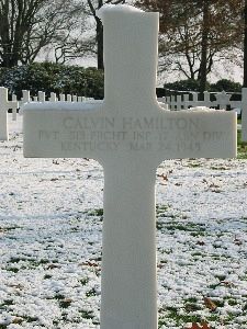 Pvt Calvin Hamilton was a chauffeur. He enlisted at Fort Thomas, Newport, Kentucky on 30 May 1944.Source of information: Raf Dyckmans, Tom Verheijden, Terry Hirsch, WWII Draft Card, www.ancestry.com - Family Tree