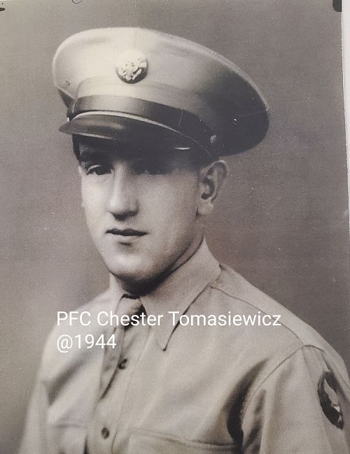 Pfc Chester E. Tomasiewicz attended high school for one year and was a welder.He volunteered for the Army of the United States in Chicago, Illinois on 25 August 1942.