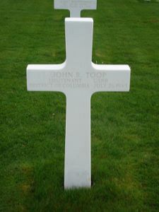 Lt John R. Toop attended Yale University where he received his B.A. degree in 1929. He was a master at Saint Paul's School from 1929 to 1931. He attended the Yale Graduate School in English and History in the period 1931-1934.According to the Navylog Lt John R. Toop was lost at sea but eventually his body had been recovered.