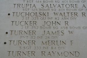 Source of information: Raf Dyckmans, Terry Hirsch, www.wwiimemorial.com, www.archives.gov – WWII Enlistment Record, www.ancestry.com – James Felty Family Tree / U.S. Cemetery and Funeral Home Collection, Obituary Jesse R. Turner / 1930 Census, www.findagrave.com - Sue
