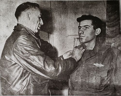 2nd Lt John S. Turner enlisted in New Haven, Connecticut on 6 April 1943.One picture show him at the moment he received his commission as a second lieutenant for outstanding battlefield performance. Formerly a technical sergeant, Turner was made a second lieutenant in the field and was commissioned by Brig. Gen. William G. Weaver, commanding general of the 8th Infantry Division.