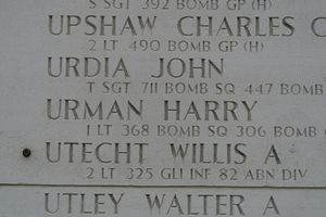 Lt Urman, a graduate of Phoenix Union High School and was employed at Williams Field as a clerk typist when he volunteered for the Air Corps of the Army of the United States on 24 March 1942The airplane collided in mid-air with B-17 #42-3533. All crew members of both planes, twenty men in total, were killed.