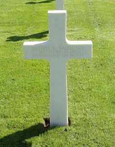 Sgt Joseph A. Valousky was employed by the Lehigh Valley Railroad before he enlisted on 7 February 1942 in New Cumberland, Pennsylvania. He was sent overseas in August 1942 and participated in the Normandy invasion on 6 June 1944. He was reported seriously wounded in action on 18 June 1944. After recovering, he rejoined his unit.