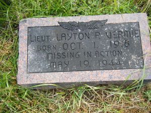 Layton P. Vermie joined the Air Corps of the U.S. Army Reserve in Santa Ana, California, on 10 March 1943.The bomber formation was attacked by German fighters. This airplane was seen to be hit, and a fire started near #2 engine. It was under control as it left the formation. It fell behind and lost altitude.