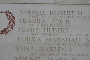 Yeary’s name is recorded on the Walls of the Missing at Netherlands American Cemetery, Margraten, Netherlands, along with others still missing from WWII. A rosette will be placed next to his name to indicate he has been accounted for.