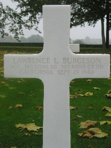 Sgt Lawrence L. Burgeson graduated from Los Angeles High School and was employed as an accountant at the Blue Diamond Corporation.He volunteered for the Air Corps of the Army of the United States on 1 December 1942 at Santa Ana Army Air Base, California.