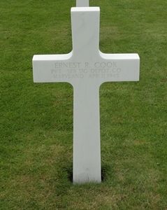 Pvt Ernest R. Cook enlisted in the Army on May 16, 1942 in Baltimore, Maryland. Ernest died in the ´Line of Duty`of a non battle related incident during the war.Source of information: Peter Schouteten, www.wwiimemorial.com, Russ Pickett, www.archives.gov, http://www.ancestry.com - 1940 Census / Ellerbrake/Havenner Family Tree