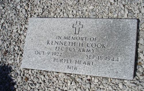 Pfc Kenneth H. Cooke enlisted in Kalmazoo, Michigan on 2 January 1943.He is remembered with a memorial at Davenport Cemetery in Newaygo County, Michigan.