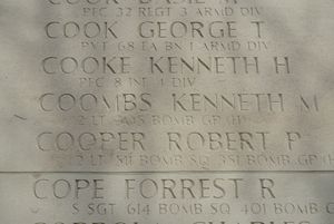 2nd Lt Kenneth M. Coombs graduated from Reading Memorial High School in 1938 and the Massachusetts State College of Agriculture in 1942.The incident took place on 14 October 1944. Lt Coombs was officially declared dead one day and one year after he was reported missing in action.