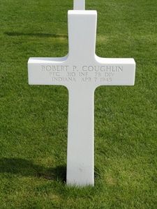Pfc Robert P. Coughlin attended Kokomo High School.He enlisted at Fort Benjamin Harrison, Indiana on 6 March 1943. He was sent overseas in October, 1944.