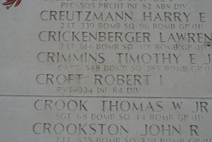 Pvt Robert I. Croft attended high school for four years and was a laboratory technician.He joined the Air Corps of the U.S. Army Reserve in Portland, Oregon on 12 December 1942 and was later transferred to the infantry.