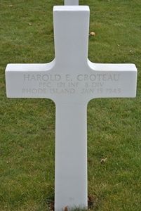 Pfc Harold E. Croteau enlisted at Fort Devens, Massachusetts on 16 October 1942.Source of information: Terry Hirsch, www.wwiimemorial.com, www.archives.gov - WWII Enlistment Record, www.ancestry.com - 1920/1930 Census, www.awon.org, 1910 United States Federal Census; Rhode Island State Census 1935