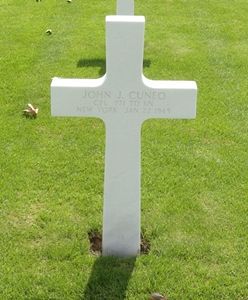 Cpl John J. Cuneo joined the National Guard in Buffalo, New York on 27 January 1941.In a house a stock of bangalores and dynamite was stored and prepared for use. In the afternoon of 22 January this stock exploded, destroying the house completely, wounding several men and killing Cpl Frank A. Bergonzi, Cpl John J. Cuneo, T/5 John G. Pinto, T/5 Antonio Muscente, Pfc Frank M. Reese and Pfc Rosario J. Maniscalco. All these men are buried at Margraten.