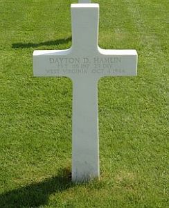 Pvt Dayton Hamlin enlisted on 23 January 1943 at Huntington, West Virginia.He was sent overseas on 19 August 1944 and joined his unit from a replacement depot on 16 September 1944.