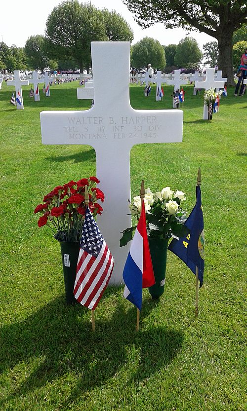 T/5 Walter B. Harper enlisted in Missoula, Montana on 5 May 1942.He arrived in Normandy on 9 June 1944 and was in action continuously until his death.