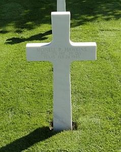 Pfc Monell R. Hawkins attended Blossom High School and was employed at Camp Maxey as a truck driver and worked in a war industry plant near Houston.He joined his unit from a replacement depot on 30 November 1944. He was promoted to Private First Class on 16 January 1945 and was seriously wounded in action on 23 February 1945, when he was just two days in action and died the next day.