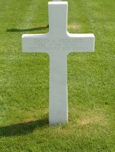 Pfc David A. Hedland was married to Bernice Stevens on 23 October 1933. Four children were born to them, one of whom, Betty Ann, died in infancy.After finishing school he worked as a farmer until in 1939 whe he moved to Englovale, North Dakota where he operated a cafe. In the spring of 1942 he went to Los Angeles where he was engaged in defense work until he enlisted in Los Angeles, California on 22 December 1943. He trained at Camp Fannin, Texas, Camp Van Dorn, Missouri and Fort George G. Meade, Maryland.