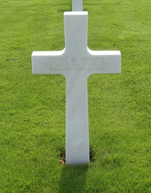 Pfc Clyde M. Hunter graduated from Peace Valley School.He enlisted in 1943 trained at Camp Mackall, North Carolina and Camp Forest, Tennessee. He was overseas for eight months.