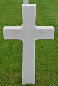 Pvt Arthur Mac Lellan's place of birth is unknown, according to his WWII Draft Card. He was adopted by the Record County Court.He was seriously wounded in action on 27 November 1944 when an enemy shell exploded while he was repairing communication wires.