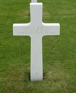 Private First Class John Masnica enlisted on 16 March 1943 in Philadelphia, Pennsylvania. He joined his unit from a replacement depot on 22 July 1944.
