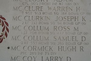 The aircraft left formation at approximately 5350N-0820E at 1140 hours. No flak had been encountered up to this point, and the cause of leaving formation is unknown. The aircraft was under control when last observed. At 1459 hours, the MFDF section gave the aircraft's position at 5230N-0325E and stated that the aircraft was about to ditch. P-51s were sent to search the area. The search was unsuccessful and was terminated by darkness. The search was continued the morning of 5 November 1944 due to a gale the night before. Eight Sterlings and four Warwicks continued the search, and at 5250N-0350E, wreckage and an empty dinghy were located with no sign of any personnel. However, there was nothing found to confirm that this wreckage was aircraft 42-32081. Source of information: Peter Schouteten, www.wwiimemorial.com, www.archives.gov, www.fold3.com, www.ancestry.com - 1920-1930 Census / Birth Index