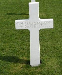 Charles Mc Cullough enlisted in June 1942 and trained at Camp Lee, Virginia, Camp Pickett, Virginia and Camp McCoy, Wisconsin. He was sent overseas in May 1944.He was awarded the Silver Star Medal posthumously twice. The citation of the first medal cited: For gallantry in action on 13 January 1945, in Belgium. During an attack on the enemy, Sgt Mc Cullough assumed command of his platoon when his platoon leader became a casualty. Deploying his men, Sgt Mc Cullough then continued the attack, despite heavy machine gun and artillery fire. Although a bullet passed through his helmet, Sgt Mc Cullough advanced in front of his men and so inspired them that they quickly overran the enemy position. Sgt Mc Cullough personally captured four of the enemy and killed several others. Due to his heroic actions, an adjacent company, which was pinned down by the enemy fire, was able to continue its advance.